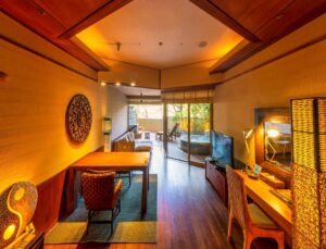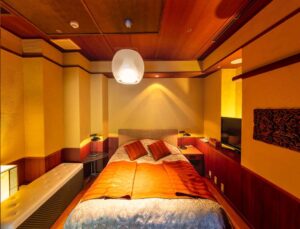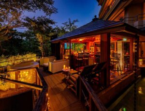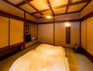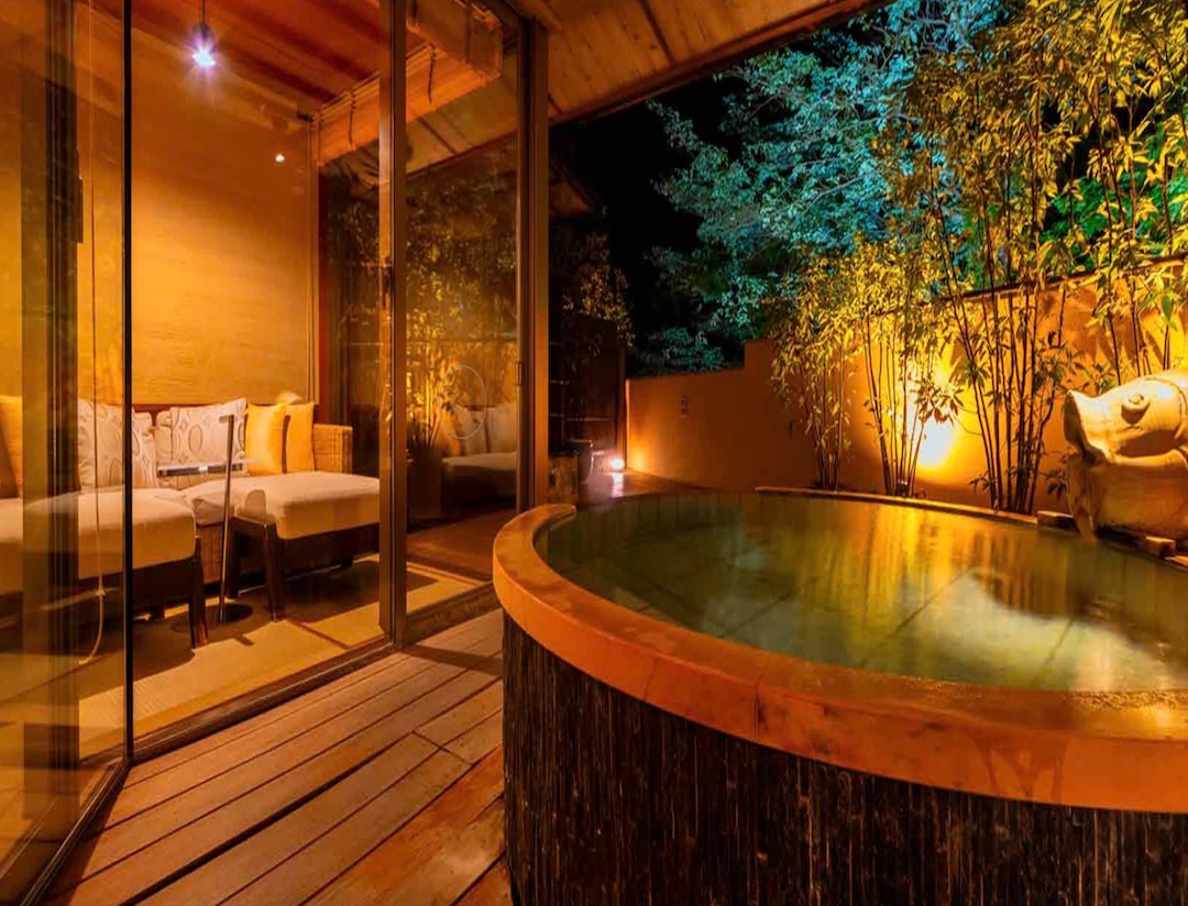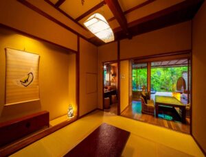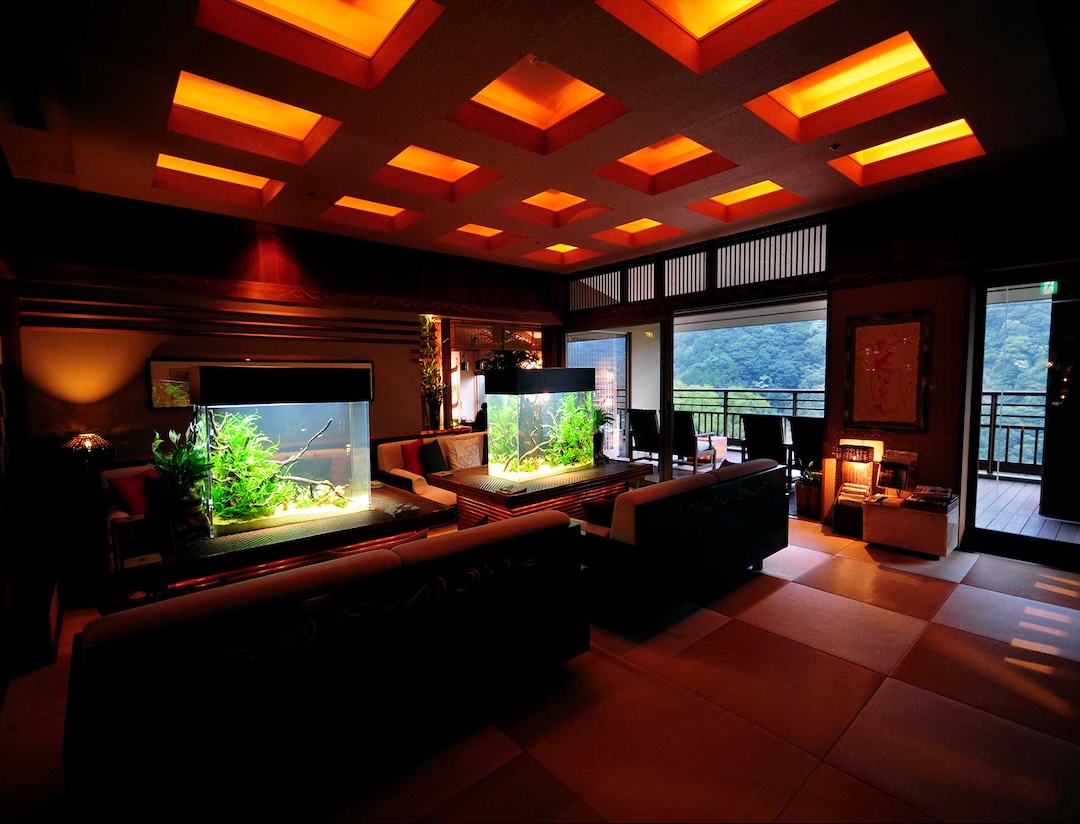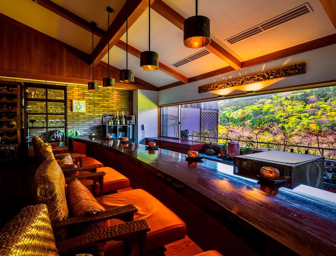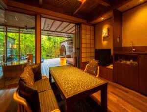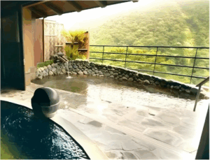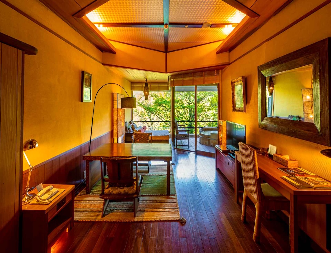 Altitude is about 420m. The ryokan is nestled in a valley, with a view of the Hayakawa River below and the majestic Hakone mountain range, which weaves its way through the four seasons. The view from the top, the healing forest surroundings, the day and night, the season that comes and goes, you can enjoy each unique flavors.