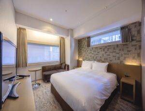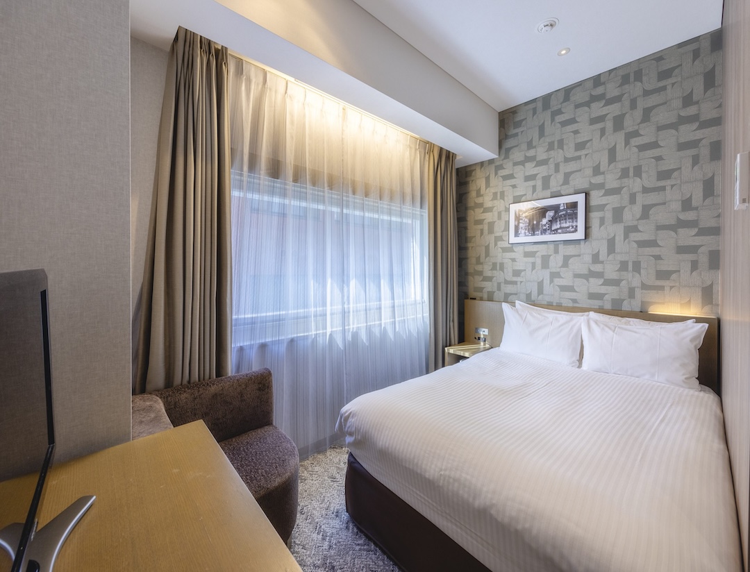 • ReFa Single/ Double: 15 sqm, Double sized bed, City view. All rooms are equipped with ReFa’s high-performance shower heads, hair dryers, curling irons, shampoos, conditioners, and body washes. You can take off your shoes on the flooring. In addition, you can enjoy the Takarazuka Revue channel “Takarazuka Sky Stage” on the TV in the guest room.
