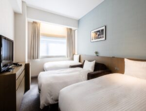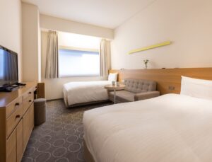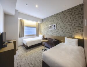 • ReFa Twin: 23 sqm, Twin sized bed, City view. All rooms are equipped with ReFa’s high-performance shower heads, hair dryers, curling irons, shampoos, conditioners, and body washes. You can take off your shoes on the flooring. In addition, you can enjoy the Takarazuka Revue channel “Takarazuka Sky Stage” on the TV in the guest room.