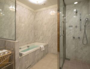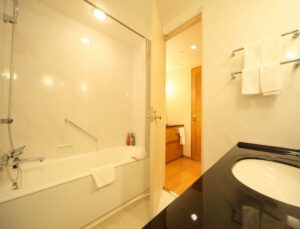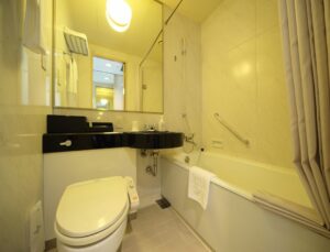 • Corner Suite: 60 sqm, Twin sized bed, City view. These spacious 60 ㎡ rooms feature a living room area with a generously-sized sofa. The bathroom is equally spacious and is equipped with a large bathtub, making it an ideal for relaxing and unwinding from the stress of travel.