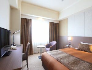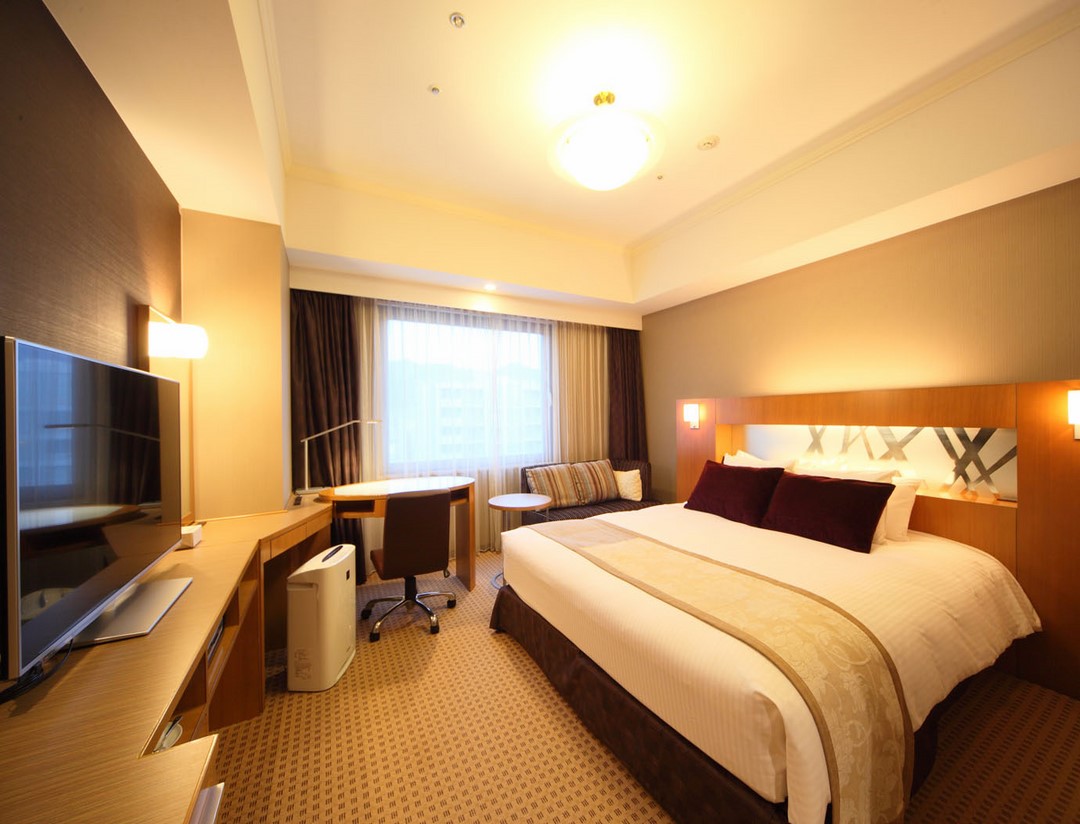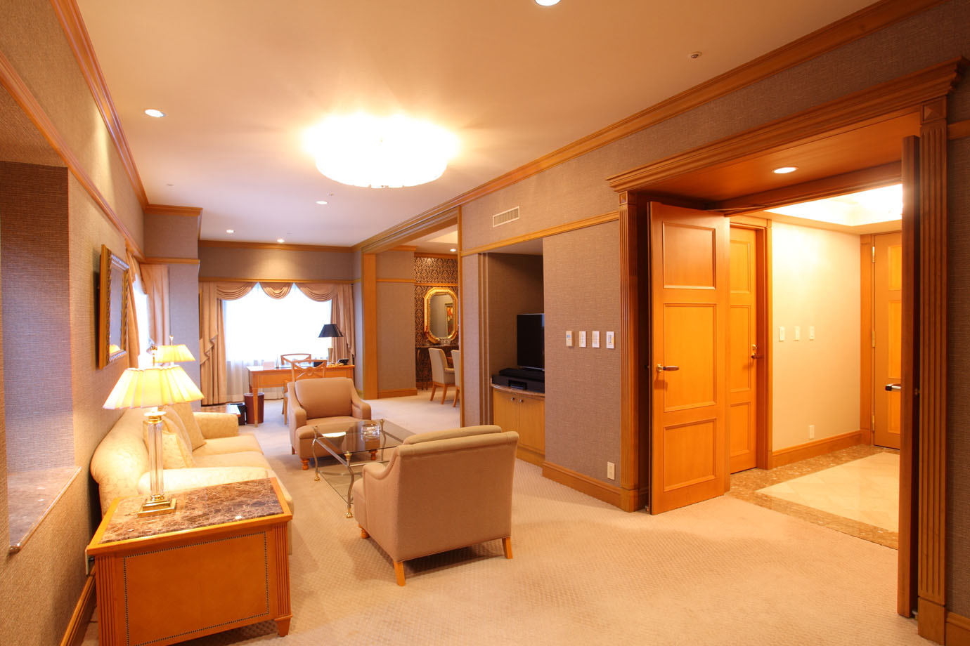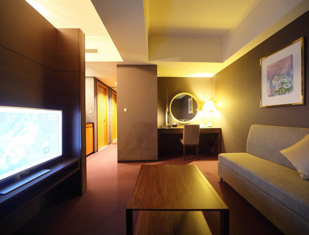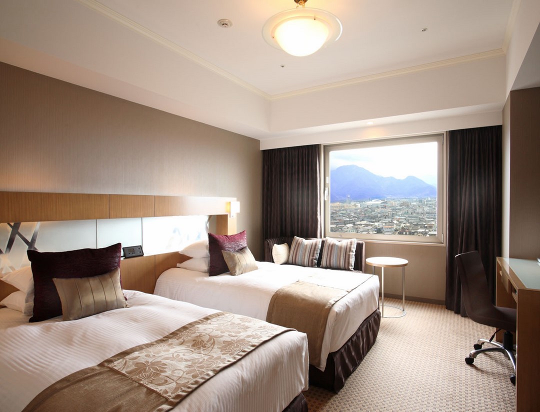 • Imperial Suite: 90 sqm, Twin sized bed, City view. The suite layout separates the living room and bedroom areas, allowing you to enjoy either in peace and comfort. The rooms are fitted with electronic curtains that unveil a view of the Shinshu area from the large windows at the touch of a button.