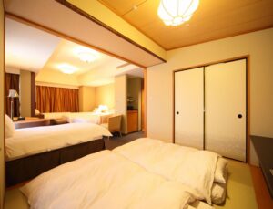 • Japanes- Western Suite: 60 sqm, Twin sized bed, City view. These rooms can be used by up to six people, making them ideal for stays by families, large groups, and groups of female tourists.