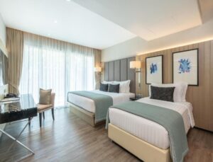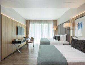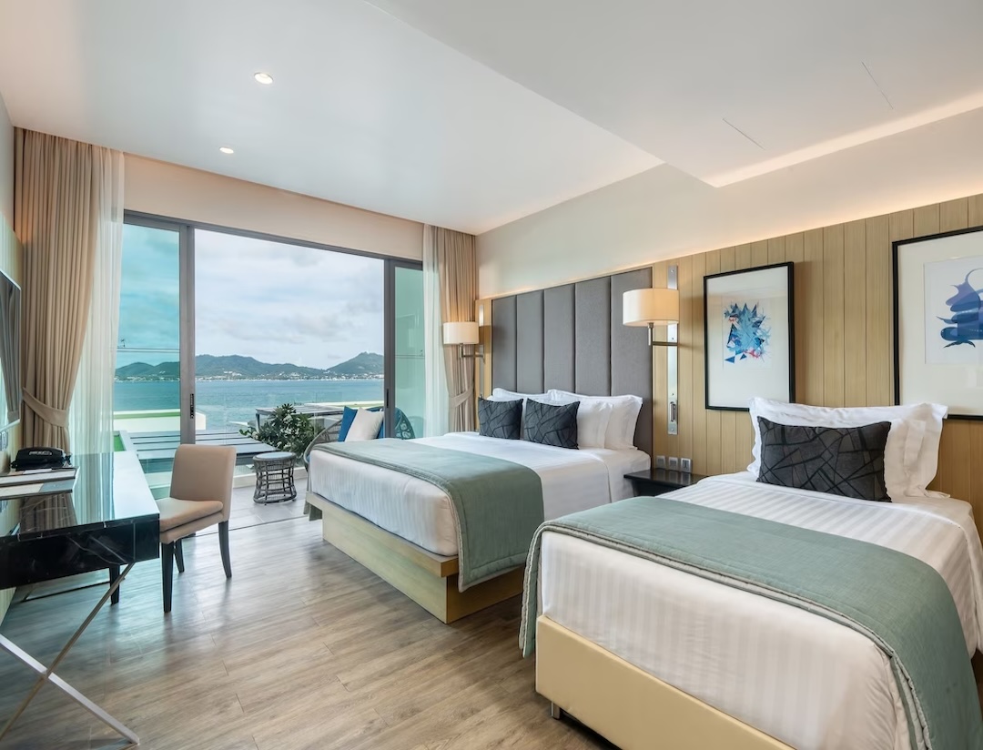 • Family Seaview: 48 sqm, King & Single sized bed, Sea view. Designed to accommodate families seeking a coastal getaway, our spacious Family Seaview room offers a harmonious blend of comfort and ocean beauty.