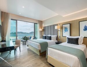 • Family Deluxe: 48 sqm, King & Single sized bed, Mountain view. Located on the upper levels of the resort, the Family Deluxe Room is perfect for beachside getaways, offering a spacious retreat with a private balcony and splendid mountain views.