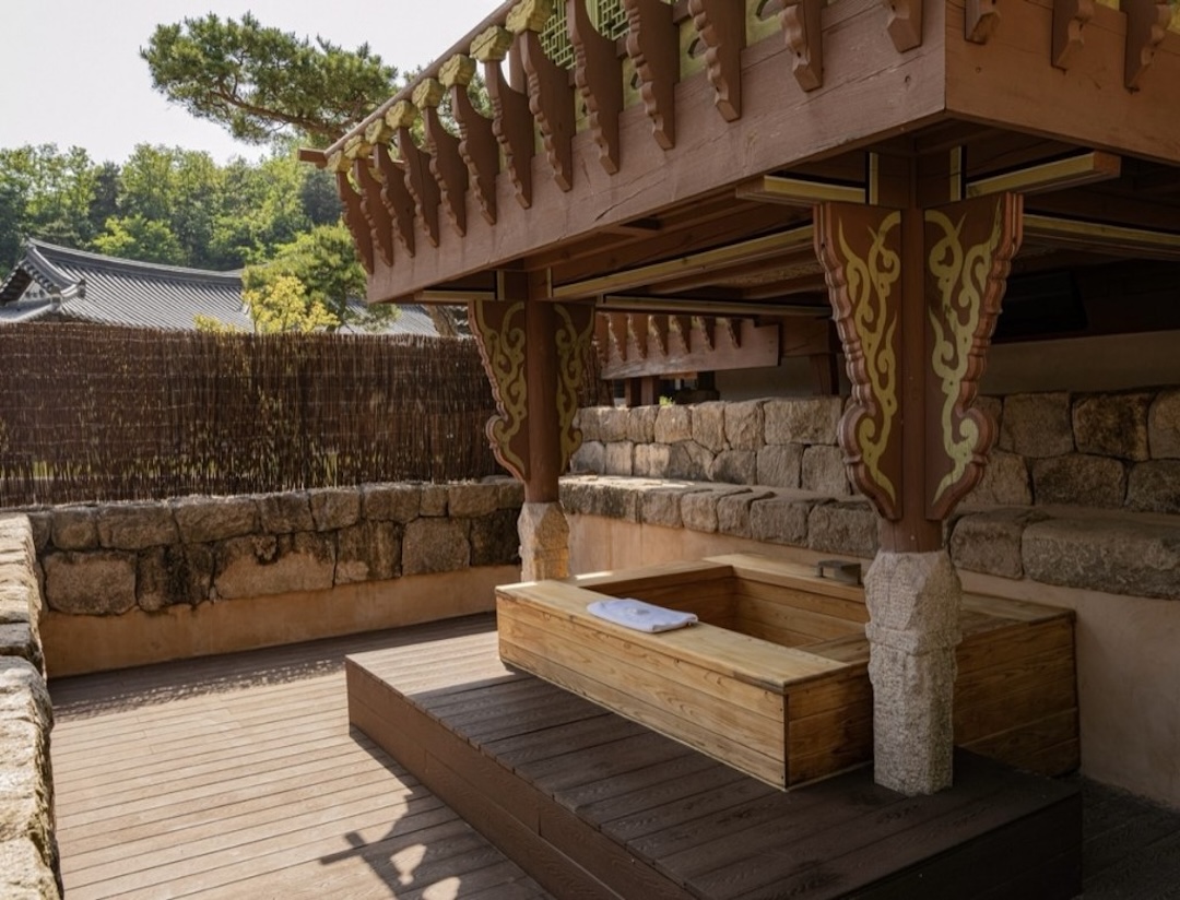 Surrounded by Nakdong River, the Hahoe Folk Village is also known as ‘The Village Floating on the River of Lotus Flowers,’ and has been the inspiration for Rakkojae Andong Hanok Hotel’s Giwa Main Complex. The flowing streams resembling that of the Nakdong River, surround the hotel, allowing you to immerse yourself in the essence of Hahoe Village even within the premises of the hotel.