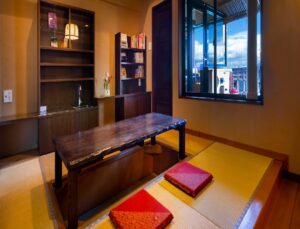 • Deluxe suite: 115 sqm, Twin sized bed, Mountain & Lake view. Guest rooms that promise luxurious relaxation, such as folk art style rooms, antique Western-style rooms, a chat room with horigotatsu, and an open-air bath overlooking Lake Biwa.