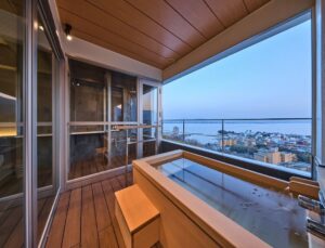 • Satoyama Suite: 80 sqm, Twin sized bed, Mountain & Lake view. Enjoying with the attractive and picturesque nature view of Hieisan and Biwako. This is a comfortable and luxury experience to your life with Open-air Hot Spring.
