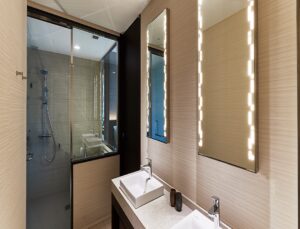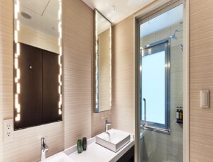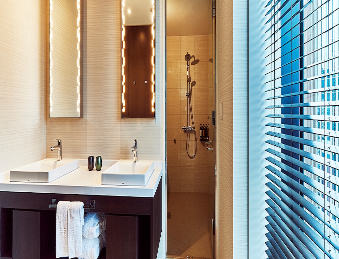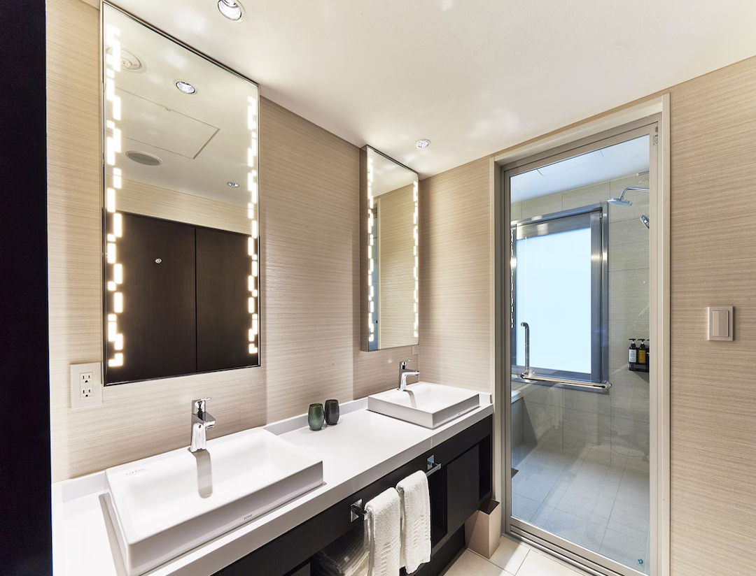 • Television (50-inch for Living room / 40-inch for Bedroom), M’s system speaker, Refrigerator, Electric kettle, Nespresso machine, Air Purifier & Humidifier Combo, Safe box, Hair dryer, Weight scale, Handy steam iron, Separate shower & bathtub, Outdoor whirlpool bath, Black tea / Japanese tea, Mineral water, Hairbrush, Toothbrush, Shaving razor, Cotton set(buds and pads), Shampoo & Conditioner, Body soap, Bath salt, Hand cream, Towels, Nightwear, Bathrobes.