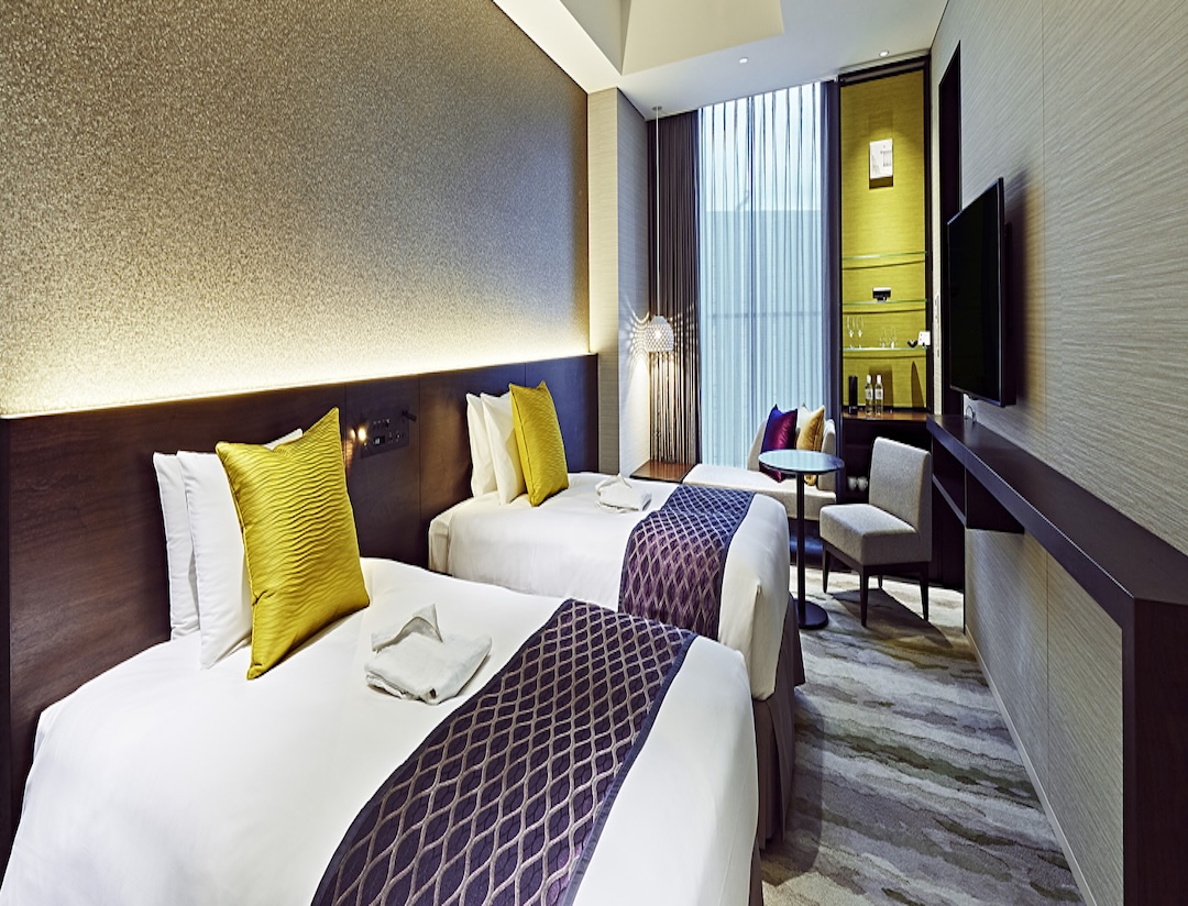 • Essential: 24 – 26 sqm, Double or Twin sized bed, City view. Located on the 6-13th Floor.