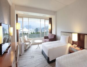 The Takaragaike area in the northern part of Kyoto, you can enjoy the gentle mountain landscape of the 36 mountains of the Higashiyama Mountain Range. Blending in with this beautiful locale is The Prince Kyoto Takaragaike, a refuge from the hustle and bustle of the world.