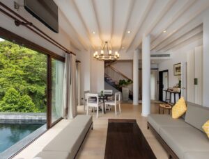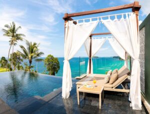 The Shore at Katathani is an awarding winning luxury pool villa resort on Kata Noi Beach in Phuket, Thailand. This beautifully secluded villa property is the perfect place to begin a new love story or to celebrate a golden one, in the resort’s perfect harmony of lifestyle and environment. Each villa features a private infinity pool, sunken lounge, bath with rain shower with the majority of villas having a panoramic view of the ocean and looking over Kata Noi beach.