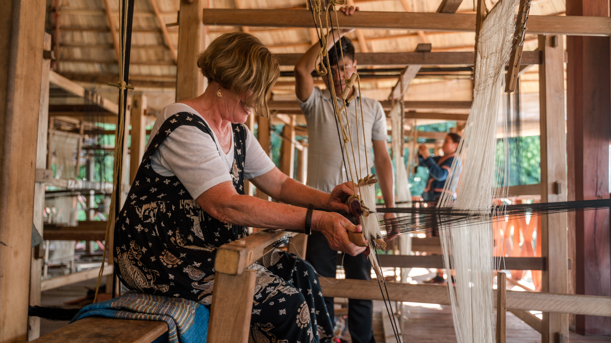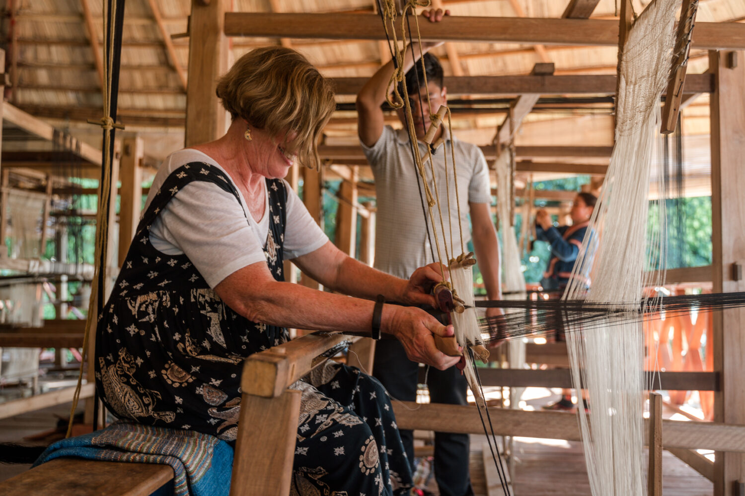 You will have an amazing experience at the Ock Pop Tok craft center in Luang Prabang, where the fascinating world of Lao textiles comes alive! On the first day, you will participate in a hands-on session to prepare natural dyes and complete two color dye projects. Lunch will be served at the Silk Road Café, which is located right at the craft center.  After lunch, you will be assigned a loom and paired with a weaver who will guide you in learning the skills of weaving “kit” and “chok”. With the support of one of the master weavers, you will create your own scarf featuring a traditional Lao motif. This class provides valuable insights into both dyeing and weaving techniques.