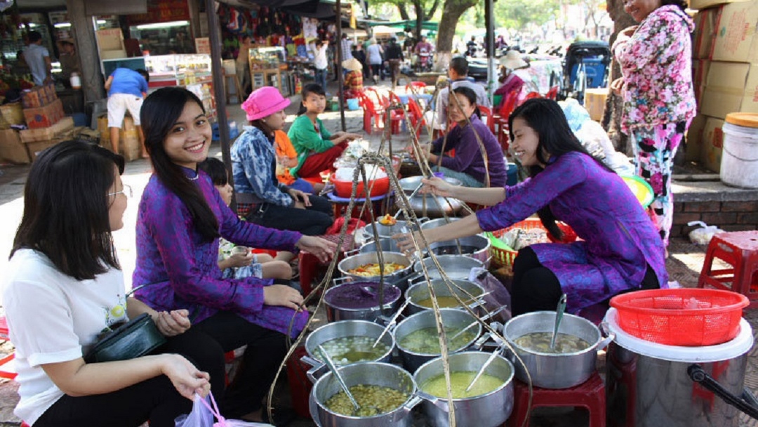 Today, drive to Vinh Long. Upon arrival, visit Vinh Long Central Traditional Market. We will take a small boat across one of the Mekong River, to come to An Bình Island. Visit local villages with traditional workshops doing Tet preparations, such as pop-rice, rice paper, coconut candy, and other special sweets. We get the chance to explore the island on foot or by bike. Take part in making the traditional sticky rice cake for Tet. Then take the Sampan ride which take you deeper into the countryside on smaller canals and to enjoy the peaceful time. We will be delighted with Southern Vietnamese folk music and enjoy a special menu prepared for celebrating the New Year at a local house. Finally, make our way back to Vinh Long