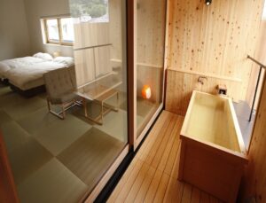 YAMAGATA THE TAKINAMI name came with our aspiration of wanting to be a showcase for Yamagata presented by Yamagata’s people and be a multiple brand store. Therapeutic effected ample volume of ‘newborn 100% hot-spring’ is delivered directly to guest rooms without any additional water as the pure gift given by rich land of Akayu.